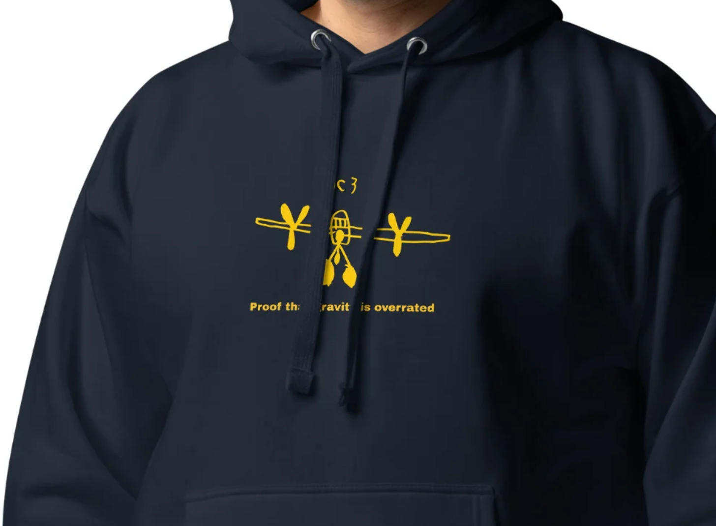Stand out with this unique and hilarious hoodie featuring the legendary Douglas DC-3 and a bold statement: "Proof That Gravity Is Overrated!" Designed to honor aviation history with a touch of humor, this hoodie is a must-have for airplane enthusiast.